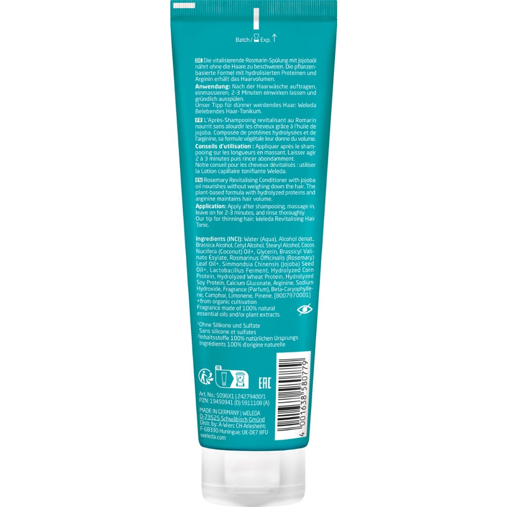 벨레다 로즈마리 리바이탈라이징 컨디셔너 150ml │ 볼륨·윤기·단백질·비건 헤어케어 WELEDA Rosmarin Revitalising Conditioner 제품 특징